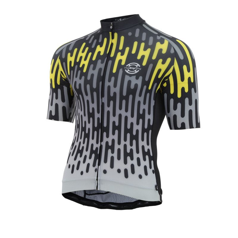 Anatomical Aero Cut Is where it all starts, developed over many years with a vast amount of interactions with a range of dedicated riders to optimize a fit that is precisely made for being in the ride position. Just like a GUCCI suit is made for standing and looking fine The Big Ring Jersey is made for going for fast and holding that firm Aero position pumping out the watts. Super Flex - Mesh Side Panels We all want a Pro-Fit, but what you might not be aware some of the Top-End Pro Teams have custom individually hand-crafted clothing, which can be done by any clothing brand on case by case bias The real skill is making a production Jersey that is going to deliver great fit across a set size range to suit most riders that will not ?break the bank?. Super Flex Mesh Side panels are highly elastic, combined with our signature Anatomical Aero Cut and the best 3D Honeycombed highly flexible super fine yarn materials deliver a fit and quality feel that is very hard to obtain. Italian Fabric Quality fabric will wear better and offer improved fit and feel. The fabric we use is milled in Italy and is highly engineered, and is tested to very strict international standards for quality control, before it enters our factory, if any of the following criteria?s don?t come up to the advertised high specifications we don?t use it specific Mass/Weight, Density, Thickness, Elasticity, Dimensional Stability, Pilling Resistance, Abrasion Resistance, Snagging resistance, UV Resistance, Air Permeability QUALITY COMES WITH SUBSTANCE ? Breathability Micro Capillary Channels The Breathability of material is paramount to the overall performance of the Cycling Jersey, Cycling is a unique sport as the intensity of workout achieved by an inform cyclist is huge, just like a high-performance car we benefit from extra cooling, your core temperature goes up performance goes down rapidly. At 35km plus your biggest obstacle is the AIR you are pushing through, Aero is important! But the cooling effect of the Air you are pushing through is often forgotten about and is one of the reasons us riders can push so hard on the pedals (we are well cooled) compared to say runner pounding their body and only going 12km average. The more effective the Cycling Jersey material is at moisture wicking and breathing in the right areas the faster you will go! Flat Aero Waist Griper Positioned at the front of the Jersey gives more of seamless layering between you and the bib shorts it has a slight rubberized feel with light compressive ribbing for a comfortable compressive feel that holds flat to the body. It has slight grippy feel rather thesticky feel of silicon strips. It sits flatter and is more Aero Ribbed Compression Sleeves with Laser Cut Ends? This material is so good we actually postponed the release of our new Kit-Onerange until we could get this new technically superior material in production quantities. Longer close-fitting sleeves is a trend derived from Time-Trialing. As sporting fabrics have evolved breathability, compressive flexibility and strength have considerably improved over the materials we could source only a decade ago. The ?longitudinal-ribbing?placement along the length of the sleeves ensures you have a much greater range of flexibility while still having comfortable amounts of compression around the circumference of your arms. (no more sleeves flapping in the wind = speed). The ends of the arm hole fabric are finished with a laser cut, to seal the fabric and give a seamless super flat aero finish. Your arms get the sun and wind, the extra cover and compression is welcome addition to any rider look for that little bit of extra performance. 4 x Rear Pockets Layering, Money, Phone, Food are essential to your cycling journeys, pockets to carry them in are just as important, the center pocket is double layered with a locking external zip that has aninternal cam action on the zip puller so once zipped up and flipped down your coffee money is staying with you no matter what the road throws at you. Reflective BlackSide Tabs? LED lights are crazy bright these days, but every little bit helps especially if lighting equipment fails, the Reflective black tabs are barely noticeable in the daytime but shine a light at night and they seriously light up, this is solid manufactured material not a cheap reflective ink that will deteriorate and fall off. A nice little add-on that will make your ride safer every time without impacting on the overall look of your Jersey. Strong YKK Lockable ZipYKK Zips are the number one maker of zips in the world, we could spec zip that looks the same at half the price, but it would be half the quality. We have specified a full hidden Zip design as it gives a seamless full graphic with aero finish to the font of the Jersey, the zip goes the full length of the Jersey for easy fitment and extra cooling if required. We feature a Zip with a locking cam feature, in the pulling position it has the cam disengaged, with The Big Ring Zipper Pull tab facing down it?s in the locked in position no slipping, so you can custom regulate exactly where you want the zip to stay open-to for additional cooling if required It?s the little-things that makes difference. UVA and UVB sun protection Decent rides are 2-3hours on average, that is a significant time to be exposed UVA and UVB sunlight. The sunlight that reaches us is made up of two types of harmful rays: Long wave ultraviolet A (UVA) and short wave ultraviolet B (UVB). UVA rays penetrate deep into the dermis, the skin?s thickest layer. Being unprotected leads to premature skin ageing and even suppression of the immune system. UVB burns the outer layer of your skin and can play key role in skin cancer. Please Note: Riding in the hours between 10:00am and 4:00pm are the peak hours of exposure. Inspiring Graphic - Riders love being fit, the unique feeling of Rider and Machine literally working together as one is something special that captivates us all from a young ag