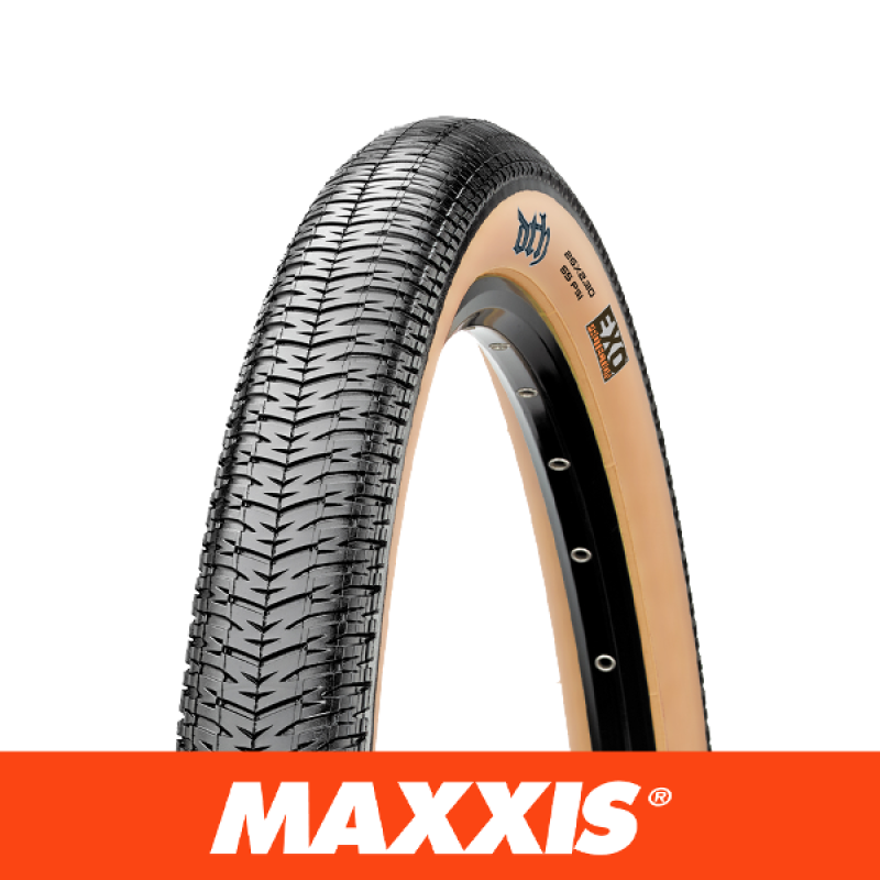 DIRT | FLAT | PARK | STREET The grooved slick design of the Maxxis DTH (Drop the Hammer) is suited to a variety of BMX, dirt jumping, and pump track situations. 26 X 2.30 Folding 60 TPI casing EXO ETRTO: 55/58-559 Weight: 786g Dual Compound Max PSI: 80 Colour: Tanwall Recommended use: Groomed tracks, pavement/asphalt, skate parks Recommended installation: Front or Rear