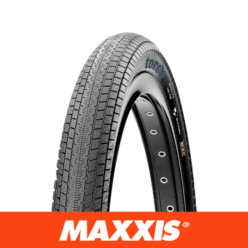 DIRT | FLAT | PARK | STREET The Maxxis Torch is designed specifically for racing on today’s paved BMX tracks. 20 X 1.75 Folding 120 TPI casing options EXO Protection Colour: Black ETRTO: 44-406 Recommended use: Asphalt/paved BMX tracks Recommended installation: Front and Rear